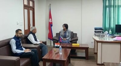 काठमाडौँ । स्वास्थ्य तथा जनसङ्ख्यामन्त्री डा सुधा गौतमसँग नेपालका लागि भारतका राजदूत नवीन श्रीवास्तवबिच शुक्रबार शिष्टाचार भेटघाट भएको छ ।मन्त्रालयमा