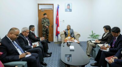 काठमाडौँ । गृहमन्त्री ओमप्रकाश अर्याल र नेपालका लागि भारतीय राजदूत नवीन श्रीवास्तवको बिचमा भेटवार्ता भएको छ । आइतबार गृह मन्त्रालयमा