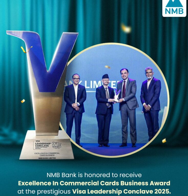 काठमाडौं । एनएमबि बैंकले भिसा इन्टरनेशनलद्वारा हालै आयोजित ‘‘लीडरशिप कान्क्लेव नेपाल २०२५’’ (Leadership Conclave Nepal 2025) सम्मेलनमा “व्यापारिक कार्ड व्यवसायमा उत्कृष्टता” अवार्ड प्राप्त गरेको छ ।