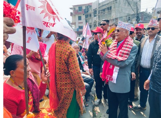 चुनावी प्रचार प्रसारको औपचारीक शुरुवात भएसँगै मतदाता तथा शुभेच्छुकहरुले नाचगान सहित अध्यक्ष ओलीलाई स्वागत गरेका थिए । अध्यक्ष ओलीले सोमबार अपह्रान्ह ३ बजे अघि दमक ६ को शंखधर चोक, दमक ७ मा रहेको तवनि चौक, वडा नं १ स्थति हावल्दार चौकमा मतदाता तथा स्थानीयसँग भेटघाट गर्नु हुने क्षेत्र नं. ५ का चुनाव प्रचार प्रसार समिति संयोजक एवम् एमाले केन्द्रिय सदस्य ईन्द्र भण्डारीले जानकारी दिनुभयो ।