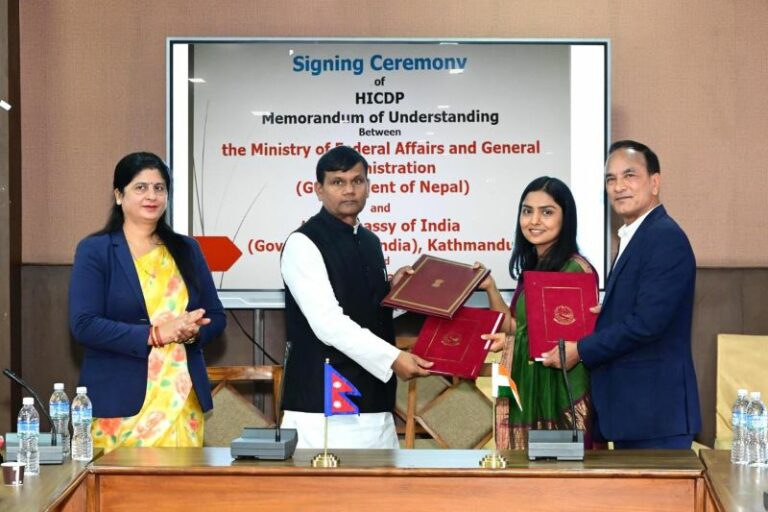 बिहीबार एक कार्यक्रमका बिच भारतीय राजदूतावास, नेपाल सरकारको सङ्घीय मामिला तथा सामान्य प्रशासन मन्त्रालय र नेपाल सरकारका परियोजना कार्यान्वयन निकायहरूबिच समझदारी पत्रमा हस्ताक्षर भएको छ।