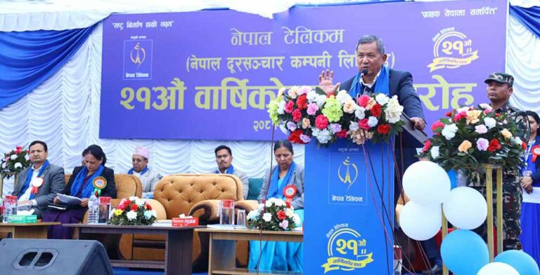 काठमाडौँ : सञ्चार तथा सूचना प्रविधिमन्त्री पृथ्वी सुब्बा गुरूङले नेपाल टेलिकम (नेपाल दूरसञ्चार कम्पनी लिमिटेड) ले आफ्ना कामको समीक्षा गरेर अगाडि बढ्नुपर्ने बताउनुभएको छ । टेलिकमको २१औँ वार्षिकोत्सवको अवसरमा यहाँ आज आयोजित कार्यक्रमलाई सम्बोधन गर्दै उहाँले टेलिकमको आम्दानी बर्सेनि घट्दै गएको र निजी क्षेत्रबाट सञ्चालित कम्पनी अगाडि आइरहेको सन्दर्भमा टेलिकमले गहिरो गरी समीक्षा गर्नुपर्ने बताउनुभयो । सरकारका प्रवक्ता समेत रहनुभएका मन्त्री गुरूङले भन्नुभयो, “सरकारी कम्पनीमध्ये टेलिकमप्रति हामीले गर्व गरिरहेका छौँ, तर प्रतिस्पर्धी बजारमा यही पाराले टेलिकम चल्दैन, यही बेलामा हामीले समीक्षा गर्न सकिएन भने पछि पछुतो हुनसक्छ ।” मन्त्री गुरूङले बढ्दो प्रविधिको प्रयोगलाई टेलिकमले अवलम्बन गर्दै सेवा विस्तार गरी निजी क्षेत्रसँग प्रतिस्पर्धा गर्नुपर्ने उहाँको भनाइ छ । उहाँले जनताप्रति उत्तरदायी बनाउनका लागि टेलिकममा कम्तीमा २५ प्रतिशत शेयर जनताको हुनुपर्ने बताउनुभयो ।