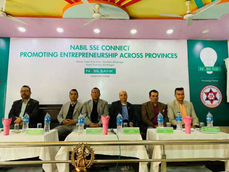 विराटनगर । कोशी प्रदेशमा उद्यमशिलताको प्रवर्द्धनका लागि मोरङ क्याम्पस र नविल बैंकको सहकार्यमा सञ्चालित नबिल सामाजिक उद्यमशिलता ‘नबिल एसएसई’ कार्यक्रम अन्तर्गत भएको कार्यशालामा सहभागी विज्ञ तथा उद्यमीहरुले उद्यम र रोजगारी प्रवर्द्धनमा जोड दिएका छन्।