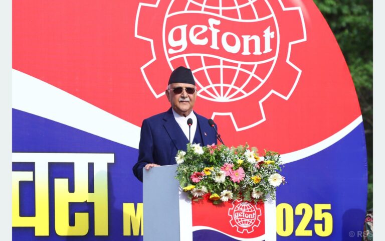 एक सय ३६औँ अन्तरराष्ट्रिय मजदुुर दिवसका अवसरमा नेपाल ट्रेड युनियन महासङ्घ (जिफन्ट) द्वारा आज यहाँ आयोजित कार्यक्रममा नेकपा (एमाले) का अध्यक्षसमेत रहनुुभएका प्रधानमन्त्री ओलीले मुलुकमा राजनीतिक परिवर्तन र सचेतनाका लागि योगदान दिने मजदुर वर्गलाई एकताबद्ध भएर सही उद्देश्यप्राप्तिमा गतिशील हुन आग्रह गर्नुभयो ।