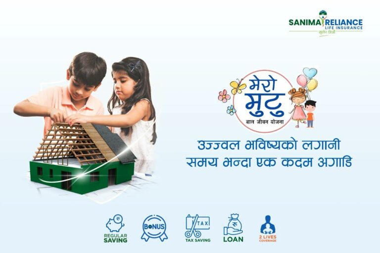 काठमाडौं । बालबालिकाको उज्ज्वल भविष्य सुनिश्चित गर्न सानिमा रिलायन्स लाइफ इन्स्योरेन्स लिमिटेडले “मेरो मुटु बालजीवन बीमा” योजना संञ्चालन गरेको छ। यो योजनाले एक महिनाको उमेरदेखि नै बच्चाको जीवन बीमा गर्न मिल्ने सुविधा प्रदान गर्छ।