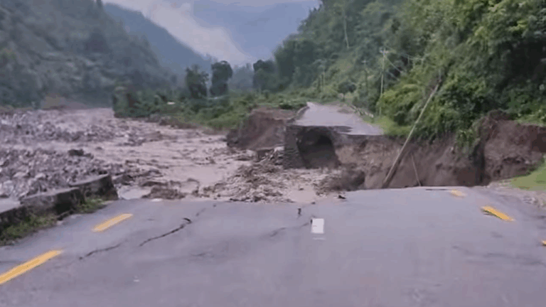 धनकुटा, १७ जेठ : आज बिहान परेको अविरल वर्षाका कारण लेउती खोलामा आएको बाढीले कोशी राजमार्गको धरान–धनकुटा सडकखण्ड बगाएको छ । बाढीले साागुरीगढी गाउँपालिका–६ स्थित फेदीको १०० मिटर सडक बगाएको मूलघाट प्रहरीचौकीका प्रहरी सहायक निरीक्षक टङ्क थापाले जानकारी दिनुभयो ।