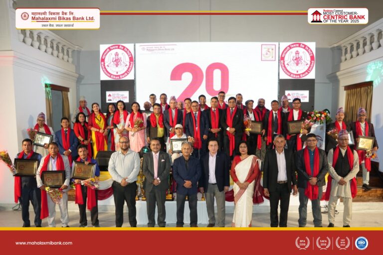 काठमाडौं । महालक्ष्मी विकास बैंकको ३१ औँ वार्षिकोत्सवको अवसरमा २० वर्ष सेवा प्रदान गरेका कर्मचारीहरुलाई एक विशेष कार्यक्रम सहित सम्मान गरिएको छ ।