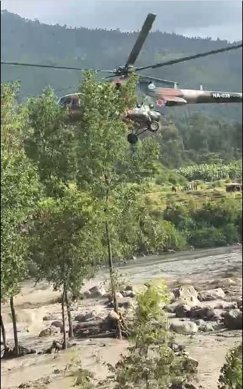 काठमाडौं । त्रिशुली नदीमा फसेका दुई जनाको उद्धार भएको छ। बिदुर नगरपालिका–१ त्रिशुली, बसपार्कनजिकै त्रिशुली नदीको बिचमा फसेका एक पुरुष र एक महिलालाई नेपाली सेनाको हेलिकोप्टरमार्फत उद्धार गरिएको हो। उक्त स्थानमा दुई वटा हेलिकोप्टर परिचालन भएका थिए।