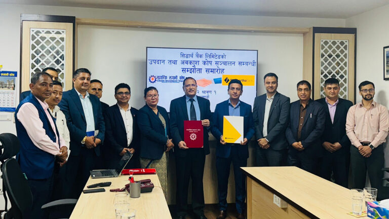 काठमाडौं-नागरिक लगानी कोष र सिद्धार्थ बैंक लिमिटेडबीच उपदान तथा अवकाश कोष सञ्चालन सम्बन्धी सम्झौता भएको छ। सम्झौतामा कोषको तर्फबाट कार्यकारी निर्देशक पर्वत कुमार कार्की र बैंकको तर्फबाट प्रमुख कार्यकारी अधिकृत सुन्दर प्रसाद कँडेलले हस्ताक्षर गर्नु भएको हो।