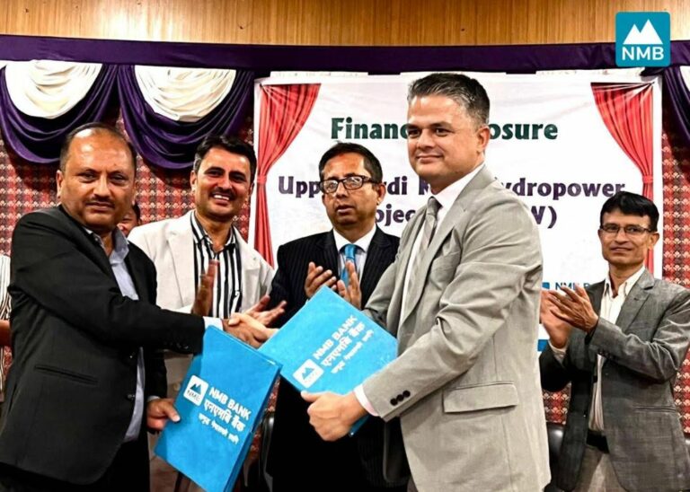 काठमाडौं । एनएमबि बैंक लि. तथा मन्दाकिनी हाइड्रोपावर लि. बीच २.९ मेगावाट क्षमताको कास्की जिल्ला, माछापुच्छ«्रे गाउँपालिकामा अवस्थित माथिल्लो सार्दी खोला जलविद्युत आयोजनामा ऋण लगानी गर्न वित्तीय व्यवस्थापन भएको छ । यस आयोजनामा एनएमबि बैंक लि. को एकल ऋण लगानी रहेको छ । २.९ मेगावाट क्षमता रहेको माथिल्लो सार्दी खोला जलविद्युत