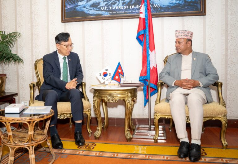 काठमाडौँ । ऊर्जा, जलस्रोत तथा सिँचाइमन्त्री दीपक खड्कासँग नेपालका लागि दक्षिण कोरियाली राजदूत पार्क ताई योङबीच शिष्टाचार भेट भएको छ ।