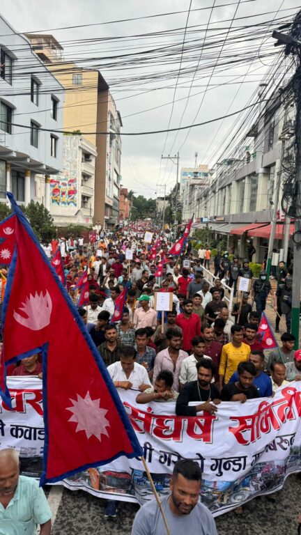 काठमाडौं, १२ भदौ । काठमाडौं महानगरपालिकाका प्रमुख बालेन (बालेन्द्र) शाहको नाकैमुनि दिनहुँ नाराबाजी सहित आन्दोलन जारी छ । बालेन र महानगरबिरुद्धको कबाड व्यवसायीको आन्दोलनमा उत्साहजनक सहभागिता रहेको छ । आज (बिहीबार) चौथो दिन पनि आन्दोलन जारी छ । बर्षाका बीच पनि आन्दोलनकारीहरु नाराबाजी सहित आन्दोलनमा सहभागि छन् । काठमाडौं महानगरपालिकाको ज्यादतीबिरुद्ध कबाड व्यवसायीलेले थालेको आन्दोलन अझै शसक्त र कडा बनाउने आन्दोलनकारीहरु बताउँछन् । भृकुटीमण्डपबाट शुरु भएको कबाड व्यवसायीको प्रदर्शन कमलादी स्थित काठमाडौं महानगरपालिकाको कार्यालय समेत घेराउ गरेको छ ।