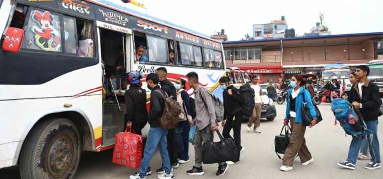 काठमाडौँ । यही असोज ६ गते घटस्थापनाका दिनदेखि आजसम्म दुई लाख ६७ हजार ४४१ जना काठमाडौँ उपत्यकाबाट बाहिरिएका छन् । अध्ययन/अध्यापन, व्यापार व्यवसाय तथा विभिन्न कामका लागि काठमाडौँ आएकामध्ये आज ११ गतेसम्म दुई लाख ६७ हजार ४४१ जनाले काठमाडौँ उपत्यका छोडेका प्रहरीले जनाएको छ । नागरिक उपत्यका छोडेर गृहजिल्लातर्फ जान थालेपछि अहिले उपत्यकामा सवारी चाप क्रमिक रूपमा घट्दै गएको छ भने राजमार्गमा सवारी चाप बढ्दै गएको काठमाडौँ उपत्यका ट्राफिक प्रहरी कार्यालयले जनाएको छ ।