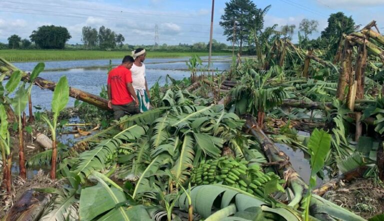 सुनसरी । गत शनिबार र आइतबार वर्षासँगै आएको हावाहुण्डरीका कारण यहाँका विभिन्न स्थानका केराखेतीमा ठुलो क्षति पुगेको छ । सदरमुकाम इनरुवासहित भोक्राहा, हरिनगरलगायत क्षेत्रका केराखेतीमा ठुलो क्षति पुगेको हो । आठवर्षदेखि केराखेती गर्दै आउनुभएका भोक्राहा नरसिंह गाउँपालिका–२ का एयुब साहमियाँले सात बिघा जग्गा भाडामा लिइ रु छ लाख बैंकबाट ऋण लिएर मियाँ केराखेती गरेका थिए । उनको तीन बिघा एक कट्ठा केराखेतीमा क्षति पुगेको छ ।