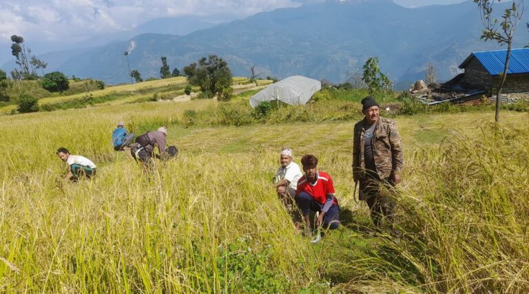 उनी भन्छन्, “मौसम परिवर्तन भई पानी परेमा पाकेको धानमा क्षति हुन्छ । वर्षभरि खानपुग्ने खेती बिग्रिएमा कसरी परिवार पाल्ने भन्ने पिरलो लाग्छ । तिहारका लागि रोटी पकाउने, घर सरसफाइलगायतका सबै काम छाडेर सबै जना बिहानदेखि बेलुकासम्म खेतमै व्यस्त छौँ ।”