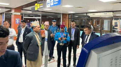 काठमाडौँ- गृह सचिव एकनारायण अर्यालले बुधबार त्रिभुवन अन्तर्राष्ट्रिय विमानस्थलस्थित अध्यागमन कार्यालयको आकस्मिक निरीक्षण गर्नुभएको छ । उहाँले प्रस्थान र आवगमनका दुवै