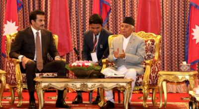 काठमाडौं । नेपाल भ्रमणमा रहेका कतारका शेख तमिम बिन हमाद अल थानी र प्रधानमन्त्री पुष्पकमल दाहाल ‘प्रचण्ड’बीच आज द्विपक्षीय वार्ता