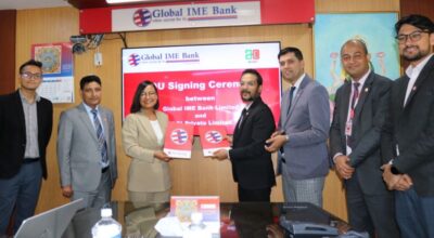 काठमाडौं । ग्लोबल आइएमई बैंक लिमिटेडले ग्रिन फाइनान्सिङ प्रवद्र्धन गर्न अलोइ प्राइभेट लिमिटेडसँग समझदारी पत्रमा हस्ताक्षर गरेको छ । यस