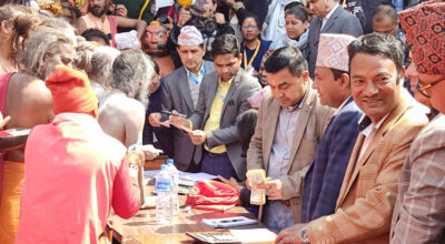 काठमाडौँ । महाशिवरात्रिको अवसरमा पशुपतिनाथ मन्दिरमा दर्शन गर्नका लागि आएका साधुसन्तलाई आज दक्षिणासहित बिदाई सुरु गरिएको छ । आज बिहान ११