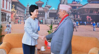 काठमाडौं । नेकपा (एमाले) का अध्यक्ष केपी शर्मा ओली र चिनियाँ कम्युनिस्ट पार्टीको अन्तर्राष्ट्रिय विभागकी उपमन्त्री सुन हायानको शिष्टाचार भेट