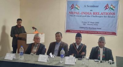 काठमाडौं । नेकपा (एमाले)का स्थायी कमिटी सदस्य तथा विदेश विभाग प्रमुख डा.राजन भट्टराईले ‘नेपाली भूमिमा कुनैपनि प्रकारको भारतबिरोधी गतिबिधि हुन