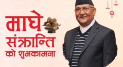 काठमाडौँ– नेकपा एमालेका अध्यक्ष केपी शर्मा ओलीले माघे सङ्क्रान्ति र माघीको शुभकामना दिनुभएको छ । अध्यक्ष ओलीले सामाजिक सञ्जालमार्फत माघे सङ्क्रान्ति
