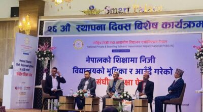 काठमाडौँ- प्रमुख राजनीतिक दलका नेताहरुले निजी विद्यालयलाई सार्वजनिक गुठीको संरचनामा जान बाध्य नपारिने बताउनुभएको छ । राष्ट्रिय निजी तथा आवासीय विद्यालय
