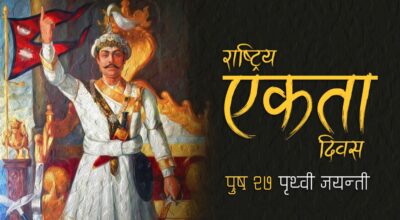 काठमाडौं- राष्ट्रनिर्माता पृथ्वीनारायण शाहको ३०२औँ जन्मजयन्ती तथा राष्ट्रिय एकता दिवस आज मुलुकभर विभिन्न कार्यक्रम आयोजना गरी मनाइँदैछ । आधुनिक नेपालको एकीकरण