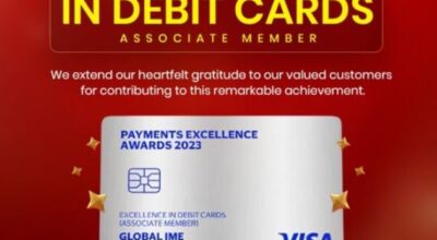काठमाडौं-ग्लोबल आइएमई बैंक लिमिटेड भिषा पेमेन्ट एक्सिलेन्स अवार्ड २०२३ बाट सम्मानित भएको छ। भिषा इन्टरनेशनलद्वारा काठमाडौँमा आयोजित लिडरसिप कन्क्लेभमा बैंकलाई