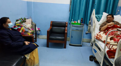 काठमाडौँ- पूर्वराष्ट्रपति विद्यादेवी भण्डारीले उपप्रधानमन्त्री एवम् गृहमन्त्री नारायणकाजी श्रेष्ठको स्वास्थ्य अवस्थाबारे जानकारी लिनुभएको छ । बाँसवारीस्थित सहिद गङ्गालाल राष्ट्रिय हृदयरोग