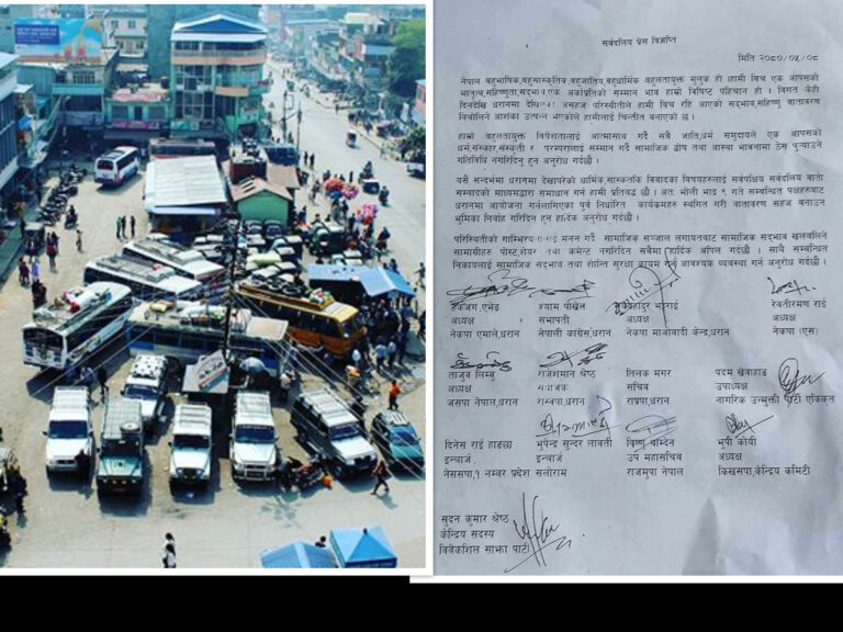 काठमाडौं । जिल्ला प्रशासन कार्यालयले धरान उपमहानगरपालिकामा निषेधाज्ञा जारी भएको छ । शुक्रबार जिल्ला प्रशासन कार्यालयले सुनसरीका १२ स्थानीय तहहरुमा