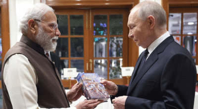 काठमाडौँ : भारत भ्रमणमा रहेका रुसी राष्ट्रपति भ्लादिमिर पुटिनलाई प्रधानमन्त्री नरेन्द्र मोदीले उनलाई रुसी भाषामा लेखिएको गीताको प्रतिलिपि उपहार दिएका