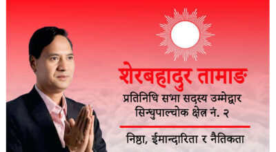 काठमाडौं । नेकपा (एमाले)का केन्द्रीय सदस्य तथा सिन्धुपाल्चोक क्षेत्र नम्बर–२ बाट प्रतिनिधिसभा उम्मेदवार शेरबहादुर तामाङले पार्टीको पछिल्लो महाधिवेशनले एमाले अझै