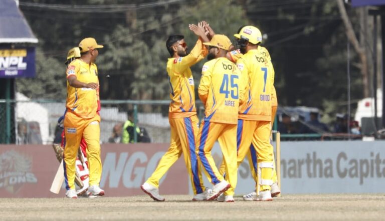 काठमाडौं, ११ मंसिर । नेपाल प्रमियर लिग अन्तर्गत लुम्बिनी लायन्सले सुदूरपश्चिम रोयल्सलाई १४४ रनको लक्ष्य दिएको छ । कीर्तिपुरस्थित त्रिवि