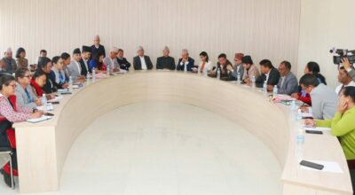 काठमाडौं । नेकपा (एमाले) को संसदीय दलको बैठक जारी छ । पार्टी केन्द्रीय कार्यालय च्यासलमा पार्टी उपाध्यक्ष रामबहादुर थापाको अध्यक्षतामा