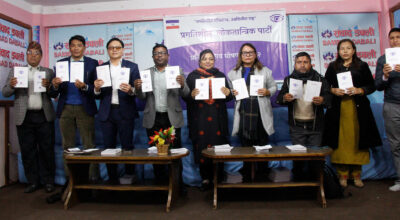 काठमाडौं । ‘प्रगतिशील लोकतन्त्र, उन्नतिशील राष्ट्र’ नारासहित प्रगतिशील लोकतान्त्रिक पार्टी (प्रलोपा) ले यही फागुन २१ गते हुने प्रतिनिधिसभा सदस्य निर्वाचनमा