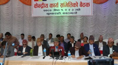 काठमाडौं । राष्ट्रिय प्रजातन्त्र पार्टी (राप्रपा) को केन्द्रीय समिति बैठक जारी छ । धुम्बाराहीस्थित एसआर बैंन्क्वैटमा शुक्रबारबाट बैठक सुरु भएको