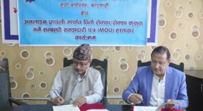 काठमाडौँ । नागरिक लगानी कोष र भूमि व्यवस्थापन तथा अभिलेख विभागबीच अनलाइन प्रणालीमार्फत धितो रोक्का र फुकुवा गर्ने सम्बन्धमा सम्झौता