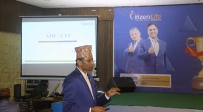 काठमाडौं । सिटिजन लाइफ इन्स्योरेन्स कम्पनीले सम्पत्ति शुद्धीकरण तथा आतंङ्कवादी क्रियाकलापमा वित्तीय लगानी निवारण सम्बन्धी तालिम सम्पन्न गरेको छ ।