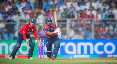काठमाडौं । टी–२० विश्वकप क्रिकेटअन्तर्गत इंग्ल्यान्डले दिएको १८५ रनको लक्ष्य पछ्याउने क्रममा नेपालले तेस्रो विकेट गुमाएको छ । १५ औं