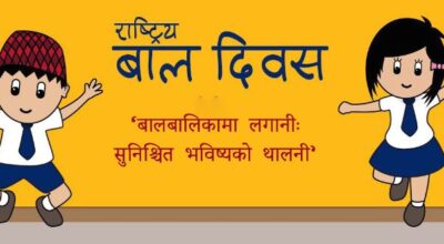 काठमाडौं- राष्ट्रिय बाल दिवस आज बिभिन्न कार्यक्रम आयोजना गरी मनाइदैछ । नेपालले संयुक्त राष्ट्रसङ्घको बालअधिकार महासन्धिलाई २०४७ साल भदौ २९ गते