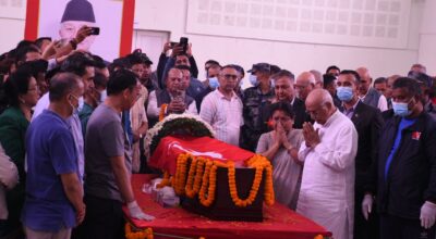काठमाडौं । संविधानसभाका अध्यक्ष एवं नेकपा (एमाले)का उपाध्यक्ष सुवासचन्द्र नेम्वाङको अन्त्येष्टि आज शवयात्रासहित पशुपति आर्यघाटमा राजकीय सम्मानका साथ हुँदैछ ।
