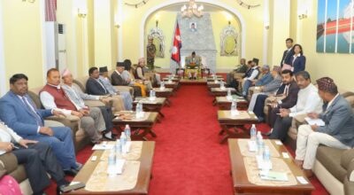 काठमाडौं । राष्ट्रपति रामचन्द्र पौडेलले शीतल निवासमा डाँकेको सर्वदलीय बैठक सुरु भएको छ । बैठकमा प्रमुख प्रतिपक्षी दल नेकपा एमाले