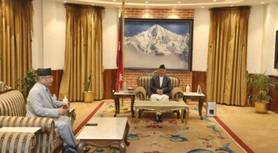 काठमाडौं । प्रधानमन्त्री पुष्पकमल दाहाल ‘प्रचण्ड’ले राष्ट्रपति रामचन्द्र पौडेलसँग भेट गर्नुभएको छ । भेटमा उहाँहरूबीच समसामयिक राजनीतिका विषयमा छलफल भएको राष्ट्रपति