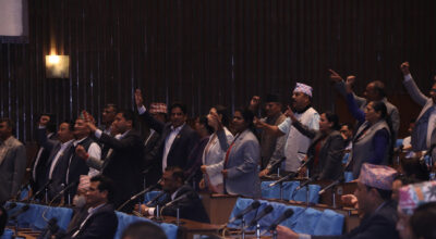 काठमाडौं । नेकपा एमालेले फेरि अवरोध गरेपछि आजको संसद बैठक स्थगित भएको छ । उपप्रधान तथा गृहमन्त्री नारायणकाजी श्रेष्ठको जवाफमा