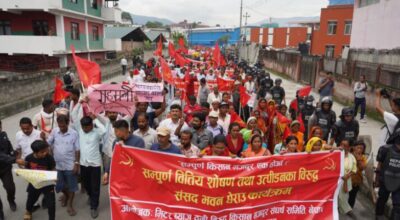 काठमाडौं-मिटर ब्याजपीडितले उपप्रधानमन्त्री तथा गृहमन्त्री नारायणकाजी श्रेष्ठको राजीनामा माग गर्दै प्रदर्शन गरेका छन्। मिटर व्याज तथा ठगीविरुद्धको किसान–मजदुर संघर्ष समितिले