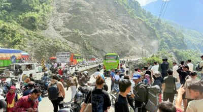 चितवन । महाअष्टमीको दिन मंगलबार साँझ करिब ७:३० बजे मुग्लिन–नारायणगढ सडकखण्डको तुईन खोला पुल नजिक माथिबाट लेदो खस्दा सडक अवरुद्ध