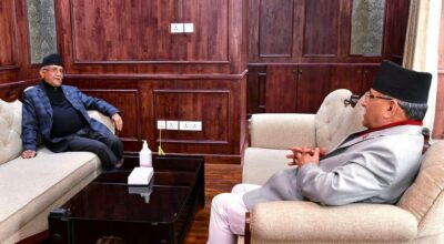 काठमाडौं – प्रधानमन्त्री पुष्पकमल दाहाल ‘प्रचण्ड’ र नेकपा एमालेका अध्यक्ष केपी शर्मा ओलीबीच भेटवार्ता भएको छ। प्रधानन्त्री तथा मन्त्रिपरिषद्को कार्यालय