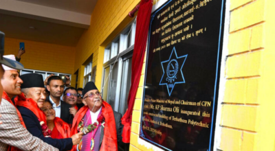 तेह्रथुम- नेकपा एमालेका अध्यक्ष एवं पूर्व प्रधानमन्त्री केपी शर्मा ओलीले तेह्रथुमको आठराइ गाउँपालिका-४ इवामा निर्माण भएको तेह्रथुम बहुप्राविधिक शिक्षालय भवनको
