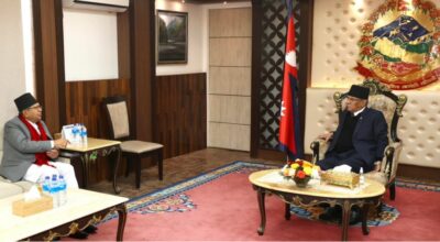 काठमाडौं । प्रधानमन्त्री पुष्पकमल दाहाल प्रचण्ड र सभामुख देवराज घिमिरेबीच भेटवार्ता भएको छ। प्रधानमन्त्रीलाई भेट्न सोमबार विहान सभामुख घिमिरे बालुवाटार